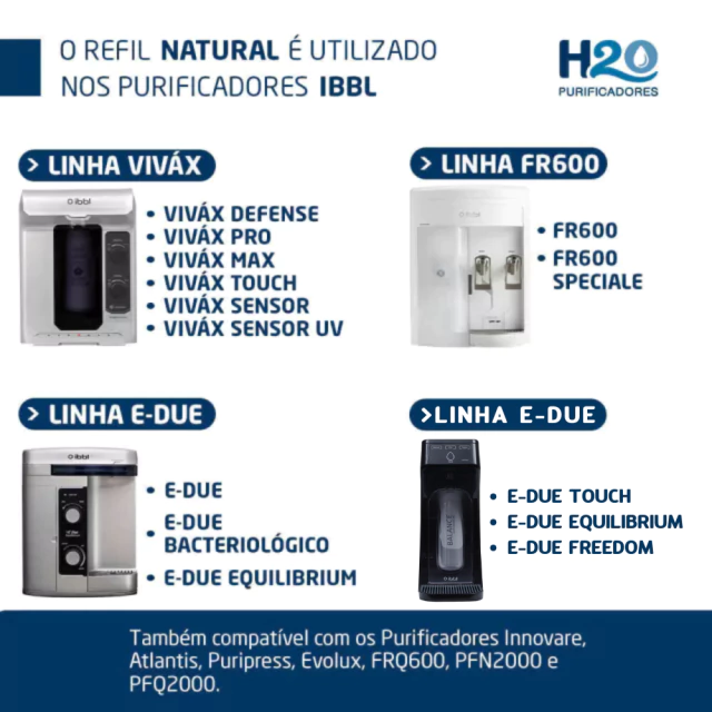 | Compatibilidade | O Refil IBBL é utilizado nos purificadores IBBL : IBBL Immaginare, Evolux, FR600, FR600 Speciale, FR600 Exclusive, FR600 Expert, FRQ600, FRQ600 Expert, PFN 2000, Atlantis e PDF |